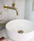 Sophisticated brushed gold wall tap. Will add class to any bathroom or powder room.