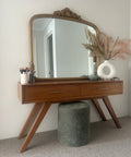 The mirror’s arched top and decorative crest make it an ideal statement above a mantle, in an entryway, or as a focal point in a living or dining room.