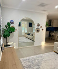 Introducing our stunning Large Arched Mirror by Ebony and Flo, a captivating addition to elevate any space. With its grand proportions and elegant design, this mirror becomes a focal point in any room, adding a touch of glamour and sophistication. The arched shape creates a sense of architectural allure, making it perfect for entryways, living rooms, or bedrooms.