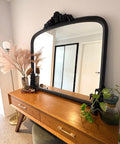 The mirror’s arched top and decorative crest make it an ideal statement above a mantle, in an entryway, or as a focal point in a living or dining room.